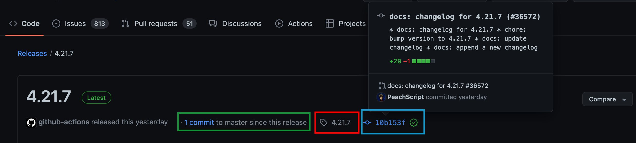 - 蓝色:releases信息,开源代码发布正式代码产生的信息。